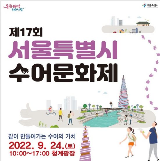 토요일 주말 오전 10시부터 오후 5시까지 청계광장에서 열리는 이번 행사는 개회식을 포함해 수어경연대회, 수어문화공연 등을 관람할 수 있으며, 시민들이 직접 참여할 수 있는 20여개의 수어 배움·체험 부스 등을 운영한다.