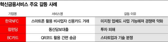 기술분쟁으로 곤욕을 치른 경우도 있다. 비씨카드는 'QR코드를 활용한 개인 간 간편 송금 서비스'로 금융위로부터 혁신금융 서비스를 지정받았는데, 스타트업 팍스모네가 비씨카드의 기술 탈취 의혹을 제기하면서 갈등을 빚었다. 이후 비씨카드는 현재 팍스모네 기술과 관련이 없는 형태로 서비스를 하고 있다고 밝혔다.