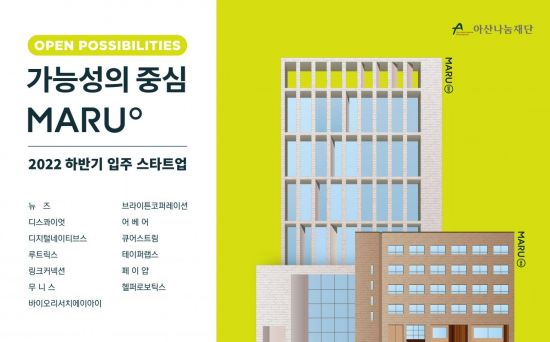[아시아경제 김철현 기자] 아산나눔재단(이사장 장석환)은 기업가정신 플랫폼 마루(마루180·마루360) 2022년 하반기 입주 스타트업 13팀을 최종 선정했다고 29일 밝혔다.