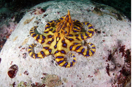 기후변화로 국내 바다 수온이 높아지면서 아열대성 어종의 출현 빈도가 증가하는 것으로 나타났다. 사진은 맹독성 해양생물인 파란고리문어. [이미지출처=국립수산과학원]