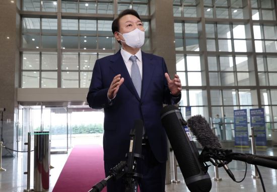 윤 대통령은 이날 오전 용산 대통령실로 출근하면서 만난 기자가 '(이날 오후 예정된) 한일 정상 통화에서 안보 협력 이외에 과거사도 주제로 논의되나'라고 묻는 말에 이같이 밝혔다.
