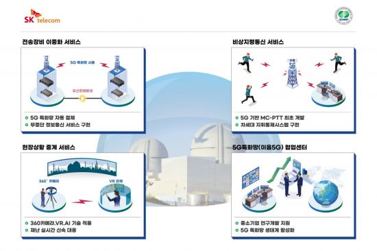 한수원과 SKT 등 컨소시엄 참여 업체들은 앞으로 한울원전 1~6호기 외곽에 5G특화망 인프라 기반 3개의 원자력 재난 대응 특화 서비스(전송 장비 이중화 서비스, 비상 지령 통신 서비스, 현장 상황 중계 서비스)를 실증하고, 경주에 위치한 한수원 본사 관제 시스템 및 협력사 지원을 위해 ‘한수원 5G특화망 협업 센터’를 개소할 계획이다.
