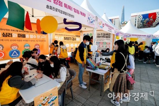25일 서울 송파구 올림픽공원 평화의광장에서 열린 '제4회 송파 교육박람회'에 참가한 청소년들이 심리상담을 받고 있다./강진형 기자aymsdream@