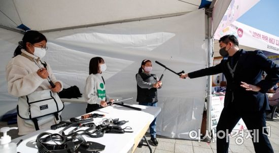 25일 서울 송파구 올림픽공원 평화의광장에서 열린 '제4회 송파 교육박람회'에 참가한 어린이들이 경호원 체험을 하고 있다./강진형 기자aymsdream@