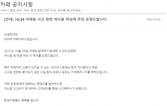 엔씨소프트는 "이태원 참사 희생자 가족들에게 깊은 애도를 표한다"며 "11월 5일 24시까지 국가 애도 기간으로 지정됨에 따라 이태원 참사 희생자들을 추모하는 마음을 담아 진행 중이던 핼러윈 관련 활동을 중단하기로 했다"고 설명했다.