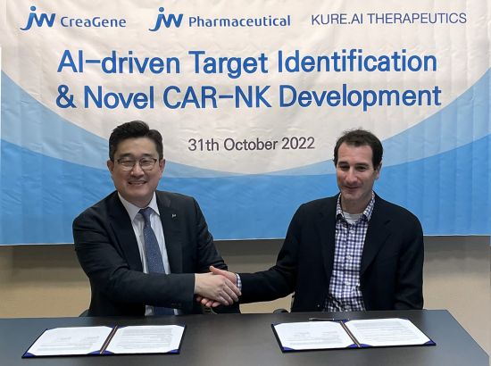 JW신약의 연구법인 JW크레아젠은 고형암 치료용 신규 키메릭항원수용체(CAR)-NK세포치료제 후보물질 도출에 큐어에이아이와 협력한다. 기존 연구개발 중인 수지상세포치료제, CAR-대식세포치료제와 함께 면역세포치료제 신약 파이프라인을 확장할 방침이다.