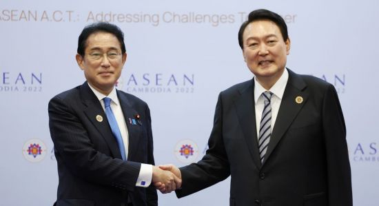두 정상은 13일(현지시간) 오후 프놈펜의 한 호텔에서 45분간 회담을 진행했다. 회담 시작에 앞서 기시다 총리는 이태원 사고와 관련 유가족과 한국 국민에 대한 애도의 뜻을 전했다. 윤 대통령 역시 2명의 일본인 희생자에 대해 조의를 표했다.