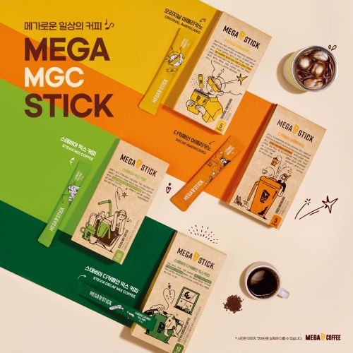메가MGC스틱 커피는 ‘오리지날 아메리카노’와 ‘디카페인 아메리카노’, ‘스테비아 믹스커피’와 ‘스테비아 디카페인 믹스커피’로 홈카페, 헬시플레저 트렌드에 맞춰 기획됐다.