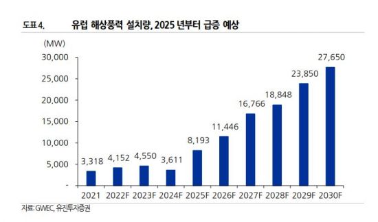 지멘스는 글로벌 해상풍력 누적 점유율 70%를 차지할 정도로 절대 강자이다. 이번 계약의가장 많은 물량은 유럽으로 공급되는데, 2025년부터 유럽의 해상풍력 설치량이 급증하는 것을 대비한 계약이다. 한 연구원은 "미국 해상풍력은 내년부터 설치가 본격화되는데 로컬 업체의 존재가 미미해서 IRA에도 자국 내 생산비율을 2025년 착공분까지는 20%만 요구한 상태"라며 "이는 건설 공사만 해도 되는 수준이어서 미국 동부의 해상풍력 타워 공급은 2020년대 후반까지 유럽업체들이 담당할 가능성이 높고, 씨에스윈드가 유럽과 미국의 해상풍력 타워 시장을 사실상 선점한 것"이라고 전했다.