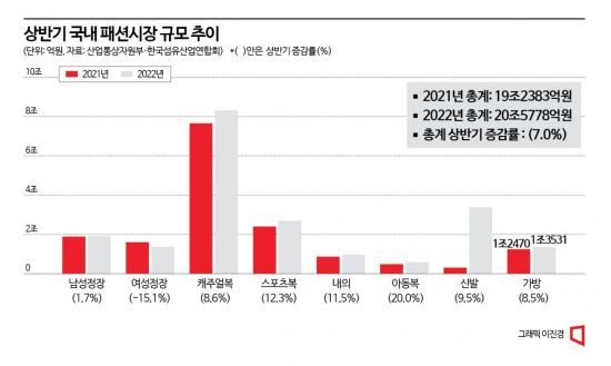 올 상반기 국내 패션업체 매출 20조5778억…전년比 7.0%↑