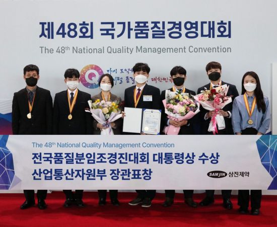 [아시아경제 이관주 기자] 삼진제약은 제48회 국가품질경영대회에서 최지선 전무가 산업통상자원부장관 개인부문 표창, 우수 품질분임조로 선정된 향남공장 '마중물' 분임조가 대통령상을 받았다고 24일 밝혔다.