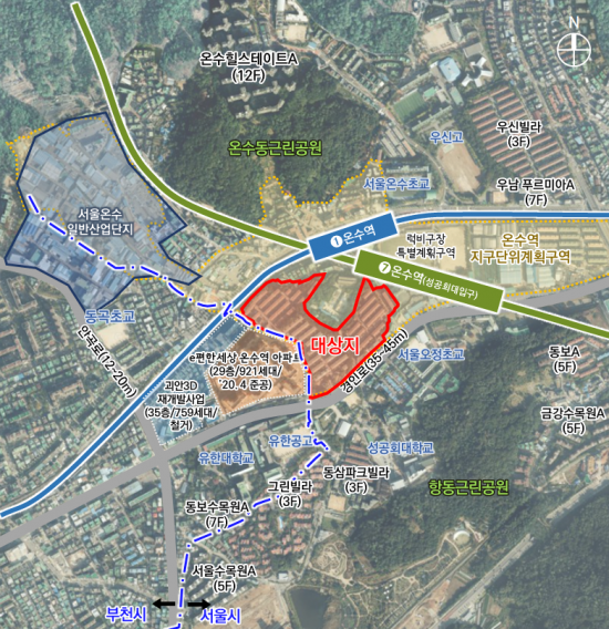 8일 시는 전날 '제13차 도시계획위원회'를 열고 온수역 일대 지구단위계획 변경 및 대흥·성원·동진빌라 재건축 정비계획 및 정비구역 변경 지정안을 수정가결했다. 구로구 온수동 일대 대흥·성원·동진빌라는 온수역 일대 지구단위계획구역 내 특별구역으로 2014년 정비구역으로 지정돼 사업을 추진 중이었다. 근린생활시설 부지 및 법적상한용적률 적용을 통해 주택공급을 확대하고자 정비계획 변경을 추진했다.
