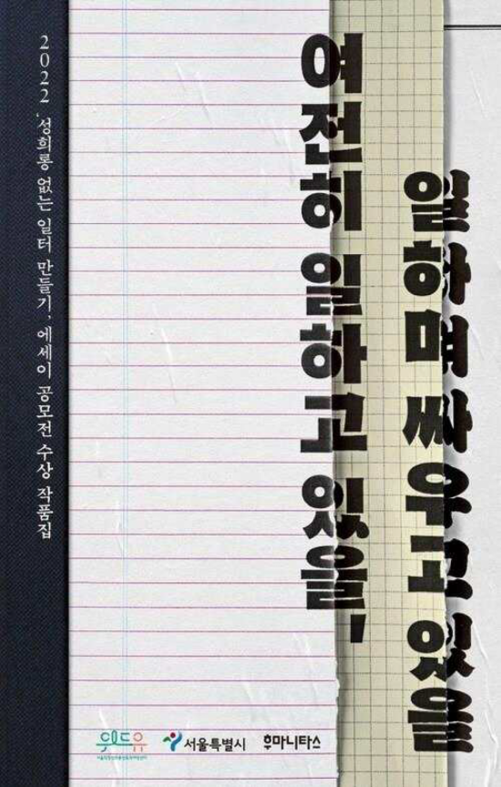 [아시아경제 성기호 기자] 서울시 서울직장성희롱성폭력예방센터는 26일 2022 ‘성희롱 없는 일터 만들기’ 에세이 공모전 수상 작품집 '여전히 일하고있을, 일하며 싸우고 있을'을 발간하며 직장 내 성희롱 피해 사례와 대응 방안 등을 소개했다.