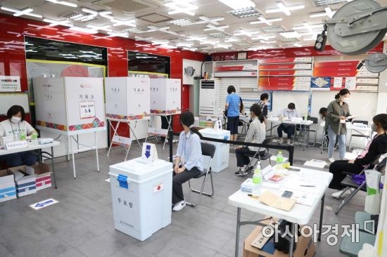 제8회 전국동시지방선거일인 2022년 6월1일 서울 서대문구 루마버텍스에 마련된 남가좌제2동 제2투표소에서 유권자들이 소중한 한 표를 행사하고 있다. /문호남 기자 munonam@