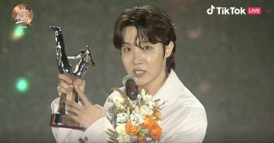 이날 방탄소년단은 음반 부문 대상을 비롯해 본상과 틱톡 인기상 등 3관왕을 수상했다. 작년 7월 솔로 앨범 '잭 인 더 박스'를 발매한 멤버 제이홉은 타이 팬스 서포트 위드 바오지상을 받았다.