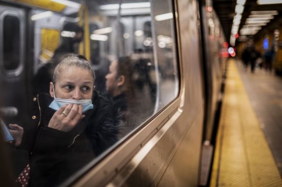 "버스·지하철 안 타요"…재택 늘자 위기의 美대중교통 뉴욕의 지하철에서 한 승객이 마스크를 쓴 채 바깥을 내다보고 있다. [이미지출처=AP연합뉴스]