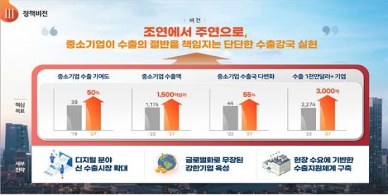 중기부는 이날 오전 열린 비상경제장관회의에서 ▲디지털 분야 신 수출시장 확대 ▲글로벌화로 무장된 강한 기업 육성 ▲현장 수요에 기반한 수출 지원체계 구축 등 3대 중소기업 수출지원 전략을 제시했다.