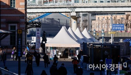 코로나19 주간 위험도가 전국, 수도권, 비수도권 모두 13주 만에 '낮음'으로 하향된 25일 서울역 광장에 마련된 임시선별검사소가 한산한 모습이다. 사진=강진형 기자aymsdream@
