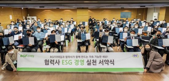 ESG 경영 선언식은 BGF리테일과 협력사가 사회적 가치를 창출하고 널리 사랑받는 기업으로 성장하기 위해 함께 나아갈 동반성장 로드맵을 공유하는 행사다. 이번에는 ▲행복하고 안전한 일터 조성 ▲환경 친화 경영 ▲윤리 경영 실천 등으로 구성된 ESG 경영 실천 약속문을 발표했다.