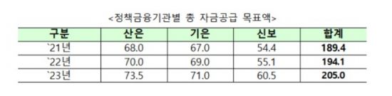금융위의 2023년 주요업무 추진계획을 보면 올해 정책자금공급액은 205조원으로 지난해보다 11조원 늘어났다. 특히 '5대 중점전략 사업'에 81조원을 공급한다. 5대 중점전략 사업은 ▲글로벌초격차 산업 지원 ▲미래유망산업 육성 ▲사업재편 및 산업구조 고도화 ▲유니콘 벤처·중소·중견기업 육성 ▲기업경영애로 해소로 이뤄져있다.