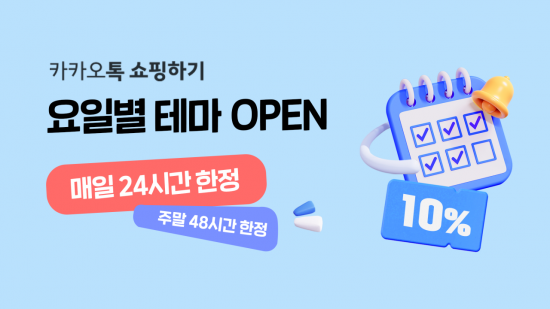 [아시아경제 최유리 기자] 카카오의 커머스CIC(사내독립기업)는 카카오톡 쇼핑하기에서 ‘요일별 테마딜’을 신규 오픈했다고 30일 밝혔다. 요일별 테마딜은 매주 월요일부터 토?일요일까지 매일 다른 테마의 상품들을 24시간 동안 특가로 선보이는 상시기획전이다.
