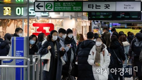 일부 시설을 제외하고 실내마스크 착용이 의무에서 권고로 전환된 30일 서울 서대문구 지하철2호선 신촌역에서 시민들이 마스크를 쓰고 이동하고 있다. 사진=강진형 기자aymsdream@
