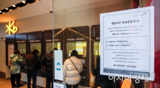 일부 시설을 제외하고 실내마스크 착용이 의무에서 권고로 전환된 30일 서울 서대문구 국민은행 신촌지점에 영업시간 정상운영 안내문이 붙어 있다. 사진=강진형 기자aymsdream@