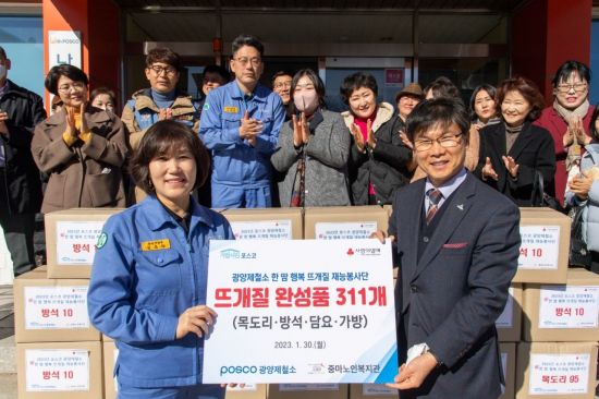 [아시아경제 호남취재본부 허선식 기자] 포스코 광양제철소(소장 이진수)의 ‘한땀행복 뜨개질 재능봉사단(단장 박옥희)’이 손수 뜨개질 해 만든 생활용품을 도움의 손길이 필요한 이웃들에게 기부해 지역사회에 감동을 선사하고 있다.