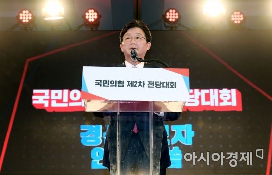 유승민 전 의원이 2021년 11월5일 오후 서울 용산구 백범김구기념관에서 열린 제2차 전당대회에서 개표결과 발표 후 경선후보자 인사말씀에서 결과 승복 의사를 전하고 있다./국회사진기자단
