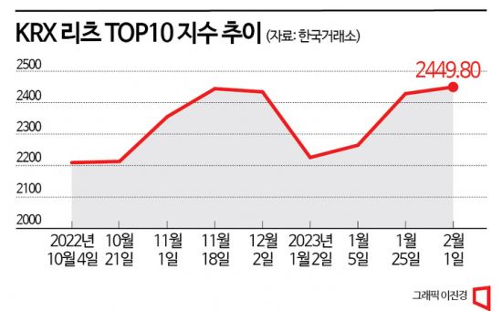 1일 한국거래소에 따르면 KRX 리츠 TOP10 지수는 연초 이후 3.07% 상승했다. 같은 기간 코스피가 2236.40에서 2449.80으로 9.54% 상승한 것을 감안하면 리츠 관련 지수는 다른 종목 대비 오름폭이 적었다. 이 기간 외국인들은 미국 연방준비제도(Fed)의 금리 인상 중단 가능성과 국내 주식의 저가 매력에 주목해 반도체·2차전지를 중심으로 코스피 대형 주식을 대거 사들였다. 같은 기간 리츠주도 금리 인하 기대감에 소폭 오름세를 보였지만, 급등장에선 소외되는 모습을 보였다.