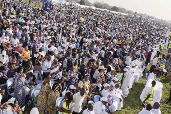 이날 교황의 미사가 열린 공항에는 전날 밤부터 아프리카 곳곳에서 교황을 직접 보려는 가톨릭 신자들이 모여들었다. 이날 미사에 참여한 인파는 100만 명을 넘을 것으로 추산되고 있다. 교황이 탄 차량이 공항 활주로를 천천히 달리자 이들은 춤을 추고 노래를 부르며 환호했다. 교황에 대한 존경으로 표시로 그의 사진이 인쇄된 옷을 입은 신자의 모습도 보였고, 아이들은 교황을 더 자세히 보기 위해 폐기된 비행기 위로 기어오르기도 했다.