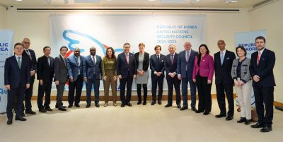 이와 함께 박 장관은 한국이 2024∼2025년 임기의 안보리 비상임이사국에 진출할 경우 안보리 임무 수행에 건설적인 역할을 할 것이라는 포부를 밝힌 뒤 안보리 이사국들의 지지와 성원도 당부했다.