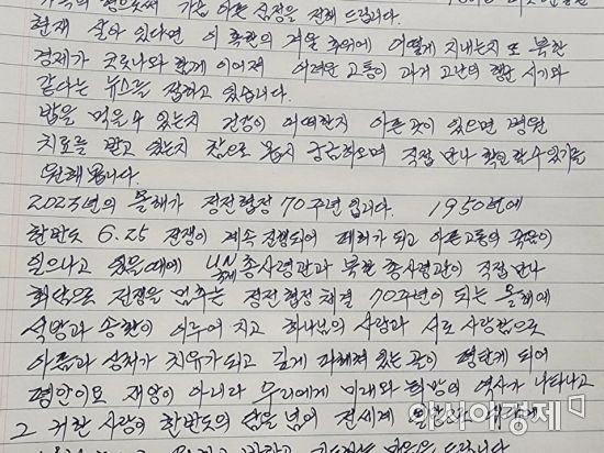 이어 "살아 있다면 이 혹한의 겨울 추위에 어떻게 지내는지, 북한경제가 코로나와 함께 이어져 어려운 고통이 과거 고난의 행군 시기와 같다는 뉴스를 접하고 있다"면서 동생의 안부를 물었다. 김씨는 또 "정전 협정 70주년이 되는 올해에 석방과 송환이 이뤄지길 원하고 바란다"고 강조했다.