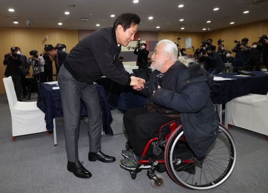 오 시장은 "서울시가 (전장연이) 무엇을 원하는지 잘 알고 있다. 서울시민도 이해를 하고 있다"며 "더 이상 극단적 형태의 시위를 자제해 달라"고 강조했다.