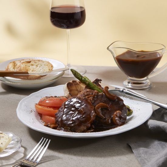 함께 제공되는 데미글라스 소스는 큼직한 사이즈로 썬 양송이가 들어가 소스의 감칠맛을 더했다. 소스는 취향에 따라 데미글라스 소스에 토마토케첩을 추가해 새콤달콤한 토마토 함박으로도 즐길 수 있다.