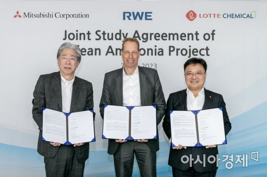 [아시아경제 오현길 기자] 롯데케미칼이 독일 에너지기업 RWE, 일본 미쓰비시상사와 청정 암모니아 생산과 공급을 위한 협의체를 결성했다.
