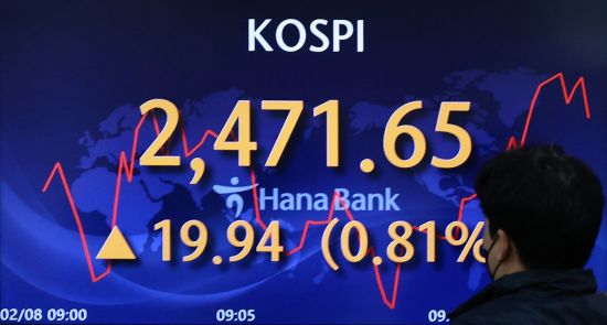 8일 오전 10시 15분 기준 코스피는 전일 대비 23.50포인트(0.96%) 오른 2475.21을 기록 중이다. 코스닥은 5.07포인트(0.66%) 오른 777.86을 기록했다.