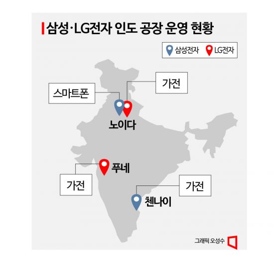 삼성전자는 지난 2021년부터 본격적으로 인도 생산 비중을 늘리고 있다. 현재 삼성전자는 인도 뉴델리 인근 노이다 지역에 세계 최대 스마트폰 공장을 운영 중이고, 남동부 해안 도시인 첸나이 지역에선 가전과 TV를 생산하고 있다.