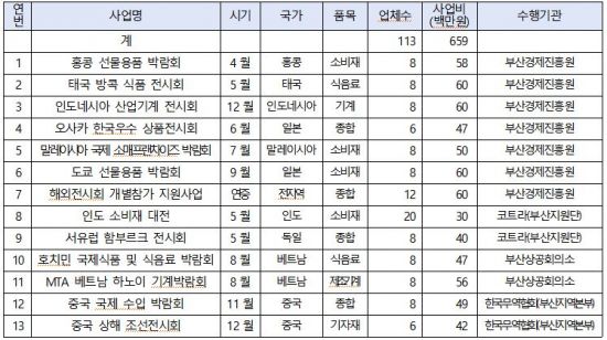 지난해 대비 약 70% 증가한 6억6000만원의 예산을 지원해 660여개 중소기업의 해외 유명 전시회·박람회 참가를 지원한다. 또 업종별 주요 전략 지역에 무역사절단을 파견해 해외 바이어와 부산 기업과의 비즈니스 미팅도 적극 지원한다.