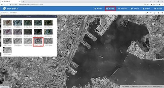 [아시아경제 영남취재본부 이동국 기자] 부산시 인터넷지도 서비스인 ‘부산생활지도’를 통해 부산 전역 대상 지리적 변천 과정을 연도별 항공사진으로 한눈에 볼 수 있다.