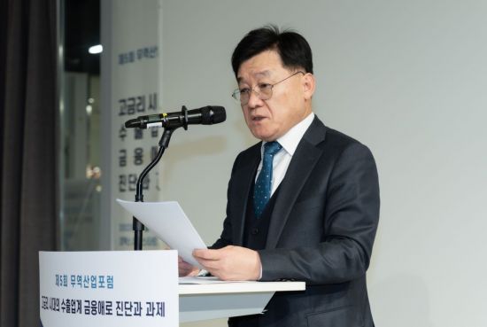 정만기 한국무역협회 부회장은 22일 서울 강남구 삼성동 코엑스에서 무협이 개최한 5회 무역산업포럼에서 이같이 밝혔다. 포럼 주제는 '고금리 시대 수출업계 금융애로 진단과 과제'였다.
