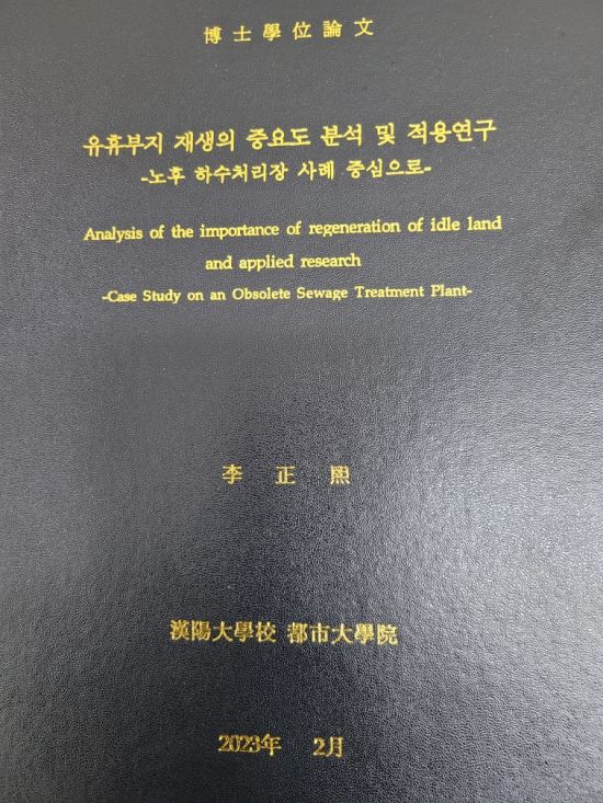 이는 지난달 25일 열린 한양대 도시대학원 이정희 도시공학박사 학위 논문인 ‘유휴부지 재생의 중요도 분석 및 적용연구-노후 하수처리장 사례 중심으로’에서 제시됐다.