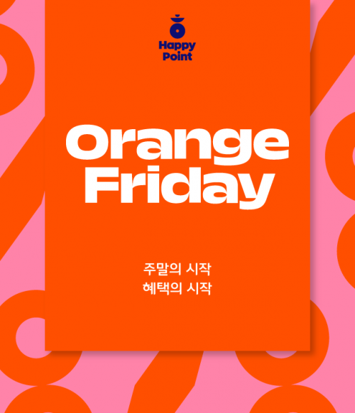 오렌지 프라이데이는 ‘주말의 시작, 혜택의 시작’을 테마로, 회사원, 학생 등 ‘부캐(부캐릭터)’로 살던 평일을 지나 진짜 ‘나’를 만날 수 있는 주말의 시작인 금요일을 맞아 풍성한 혜택을 선사하는 행사다. 해피포인트의 브랜드 컬러인 오렌지를 활용해 밝고 경쾌한 느낌과 행복한 감정을 고객에게 전하고자 했다.