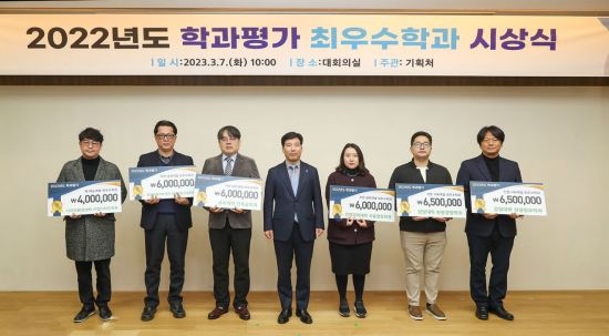 지난 7일 승학캠퍼스 대학 본부 대회의실에서 열린 2022년도 학과 평과 최우수학과 시상식에서는 경영정보학과·관광경영학과와 식품영양학과·건축공학과·생명자원산업학과, 산업디자인학과 등 모두 6개 학과가 상장과 인센티브를 받았다.