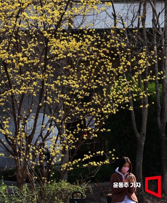 낮과 밤의 길이가 같아진다는 절기 '춘분'인 21일 서울 종로구에 산수유가 만개해 시민들이 봄기운을 만끽하고 있다. 사진=윤동주 기자 doso7@