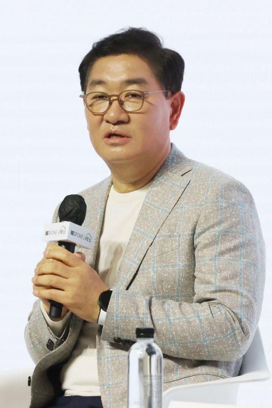 한종희 삼성전자 DX부문장 부회장이 21일 서울 중구 커뮤니티하우스 마실에서 열린 '비스포크 라이프(BESPOKE Life)' 미디어데이에서 질의응답을 하고 있다. [사진=연합뉴스]
