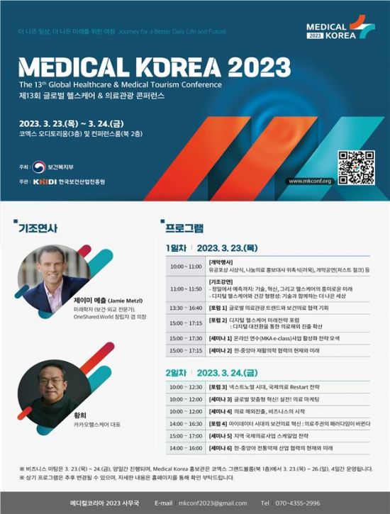 보건복지부가 주최하고 한국보건산업진흥원이 주관하는 '메디컬 코리아 2023'이 23~24일 서울 코엑스에서 개최된다.