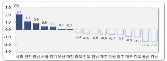 시도별 순이동(전입-전출)은 경기(4738명)와 서울(3467명), 인천(2569명) 등 7개 시도가 순유입됐다. 경남(-4162명)과 경북(-2015명), 대구(-1701명) 등 10개 시도는 순유출됐다.