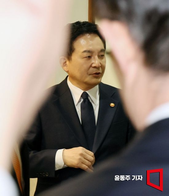 원희룡 국토교통부 장관이 22일 서울 종로구 정부서울청사에서 열린 부동산관계장관회의에 참석, 회의 시작에 앞서 주요 참석자들과 심각한 표정으로 이야기를 나누고 있다. 사진=윤동주 기자 doso7@