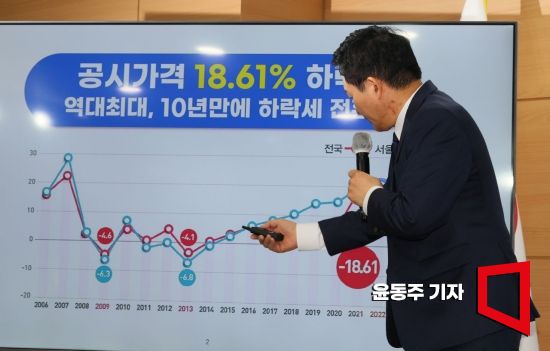 원희룡 국토교통부 장관이 22일 서울 종로구 정부서울청사에서 2023년 공동주택 공시가격 산정 결과를 브리핑을 하고 있다. 사진=윤동주 기자 doso7@